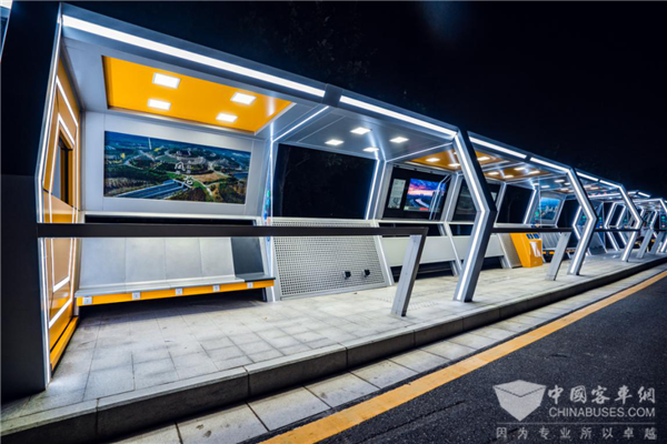 线路沿途建设了34个“太空舱”造型智慧站台。通过高清定位和大数据技术实现公交时刻表运行,并提供精准到秒级的车辆到站提醒服务。USB充电口、储物箱、自动售卖机一应俱全,人性化表现优秀。