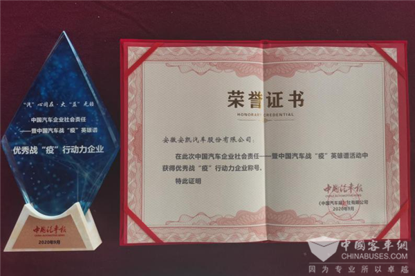善作为勇担当!安凯客车荣膺优秀战“疫”行动力企业称号