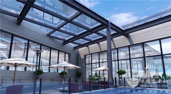 还配备足球场、篮球场、游泳馆为员工强身健体
