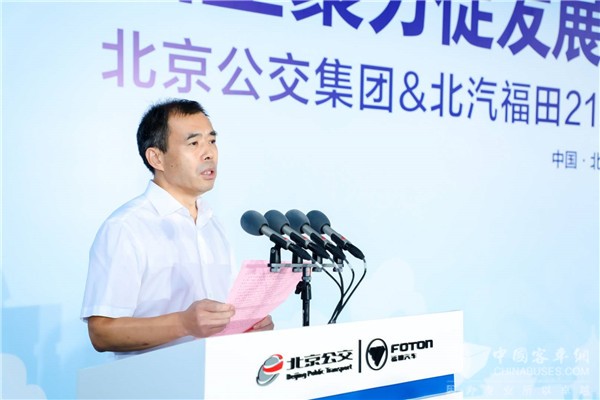 北京公交系统是北京公共交通重要的组成部分,是北京城市互通有无的重要保障。一直以来,北京公交坚持做首都智慧交通和绿色出行的倡导者和践行者。北京公交集团党委副书记、总经理朱凯在交车仪式上指出:“北京公交集团在‘立足首都,服务京津冀,努力打造国内领先、世界一流的现代公共交通综合服务企业’的目标定位下,努力践行‘让更多的人享受更好的公共出行服务’的企业使命,积极落实《北京市清洁空气行动计划》,大力推进新能源、清洁能源车辆发展,为打赢北京蓝天保卫战贡献力量。今年采购的2120辆福田公交车全部为新能源车,其中的纯电动车能量储备更大,续驶里程更长;更有利于方便我们灵活调度和远距离运营使用,更好地满足广大市民出行需求。
