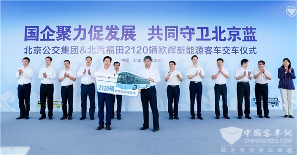 2020年9月15日,以“国企聚力促发展 共同守卫北京蓝”为主题的“北京公交集团&北汽福田2120辆欧辉新能源客车交付仪式”在北汽福田总部举行。此次,北汽福田向北京公交集团交付的2120辆福田新能源客车,既是后疫情时代新能源客车行业的首个大单,也是继2019年向北京公交交付2790辆新能源客车之后的深化合作之举。至此,北汽福田已向北京公交集团交付1.1万辆新能源客车,以深耕科技的创新实力支持北京公共交通清洁高效运营。