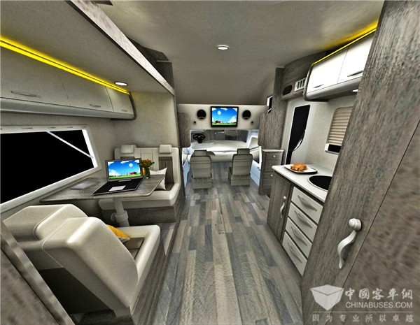 这次我们要体验的是C型旅居房车,外观时尚、室内设计优异、空间更是充裕。这是一辆6座的双拓展房车。