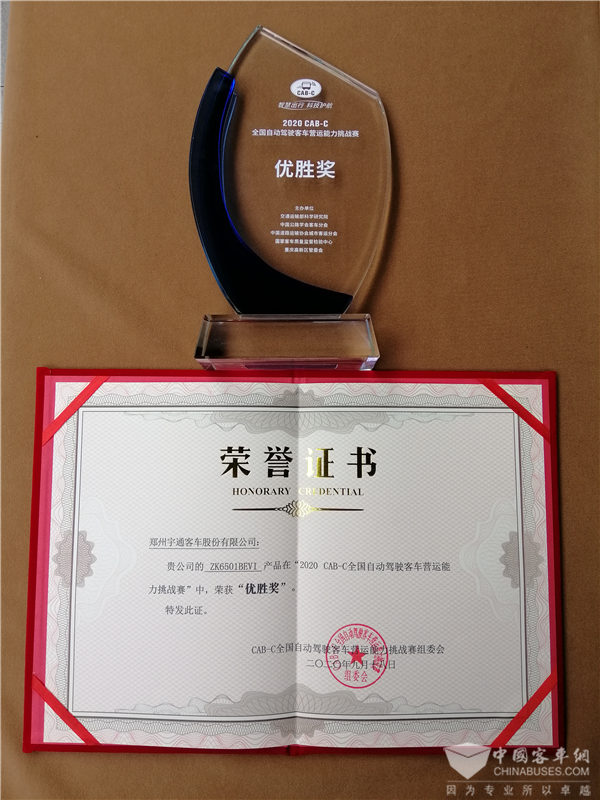 冠军! 宇通“小宇”问鼎首届全国自动驾驶客车营运能力挑战赛
