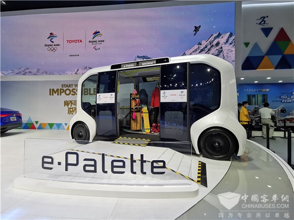 e-Palette是丰田为东京奥运会接驳服务而设计的自动驾驶巴士车型。方正的造型是为了最大限度地保证车内空间。e-Palette车厢内使用的座椅严格按照2020年东京奥运会和残奥会的相关规格要求开发,无论乘客的身高与体形如何,车内座椅高度及座椅扶手都可以满足。