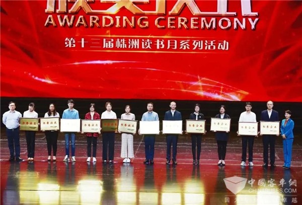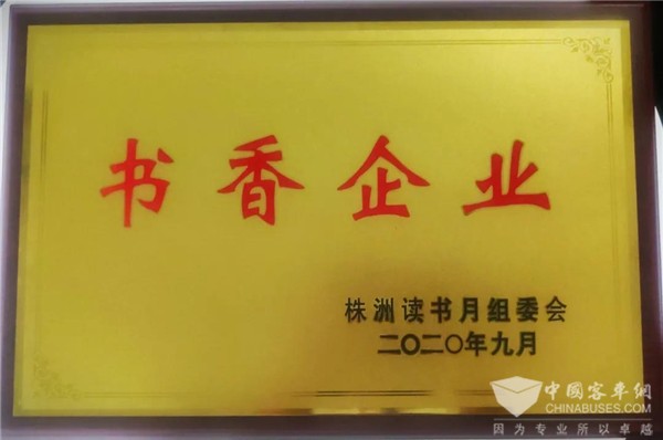 2020年9月29日,以“知识就是力量,阅读改变人生”为主题的第十三届“株洲读书月”系列活动暨颁奖仪式在株洲神农大剧院举行,中车电动喜获“书香企业”荣誉称号。株洲市委副书记、市长阳卫国,市委常委、宣传部长聂方红等领导为受表彰企业授牌。