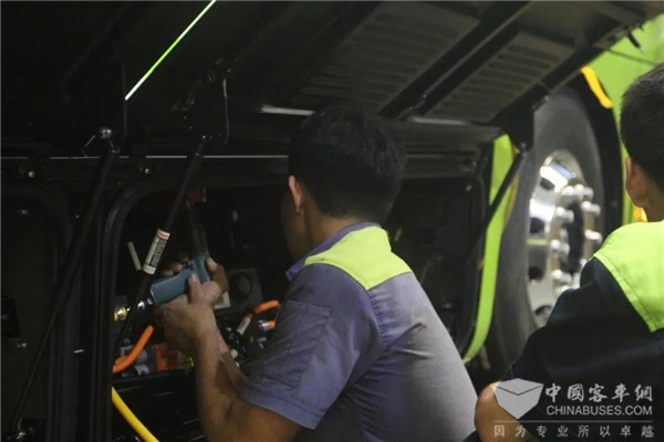 为了保证北京公交订单交付,在生产冲刺阶段,不管多晚,孙工都是最后一个离开的。入库小组最高的记录是一天检验了13辆公交车,孙工为此付出了很大的努力。