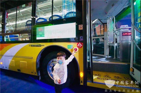 来自澳门的市民张先生带着孩子来看展,忍不住登车亲身感受,“这么时尚的公交车,我第一次看到,真期待在澳门可以坐到!”