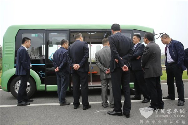吴家宏首先参观并体验了公司新产品,两款5米微巴客吸引了他的目光,吴家宏仔细询问:“这款车型将运营于哪些地方?都有哪些特点呢?”。刘凌介绍道:“5米微巴客系列产品主要投放城市微循环、城乡公交等市场运营;小身材大空间、更节能更智能是车型的主要特点。整车搭载中车独有的‘云智通’大数据管理平台,可打通车端数据壁垒,为车辆运营者提供更多便利,创造更大价值。”介绍过程中,吴家宏饶有兴趣地坐上驾驶位亲身体验,同时对微巴客智能化水平给予高度赞许。