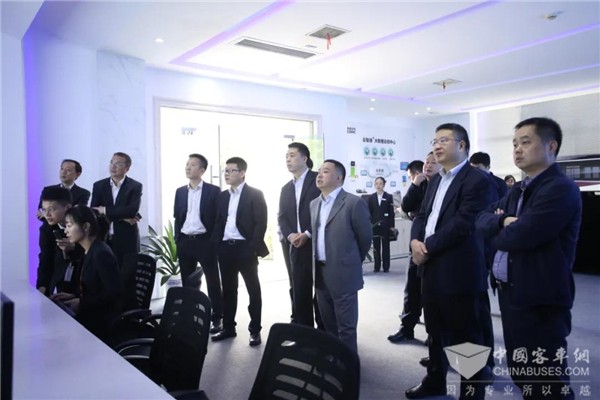 随后,吴家宏一行来到试验检测中心、云智通云视中心参观。移步至云智通云视中心,吴家宏认真询问了公司在车联网、云计算、大数据分析等方面的研发情况。刘凌介绍:“依托5G技术与自主核心科技——‘T科技’,中车电动将公交公司大数据与车辆大数据互通,以新能源客车为载体,构建多场景智慧互联移动出行方案,打造未来移动生活空间……”