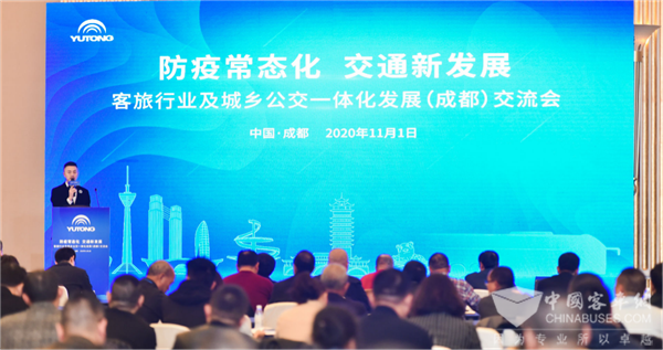 2020年11月1日,以“防疫常态化 交通新发展”为主题的客旅行业及城乡公交一体化发展交流会在“蓉城”成都开幕,本次活动由宇通客车携手交通运输部科学研究院联合举办,来自行业管理部门、公交客运企业、运输装备制造企业的代表及业内专家等150余人齐聚一堂,共同为行业转型、可持续发展献计献策。