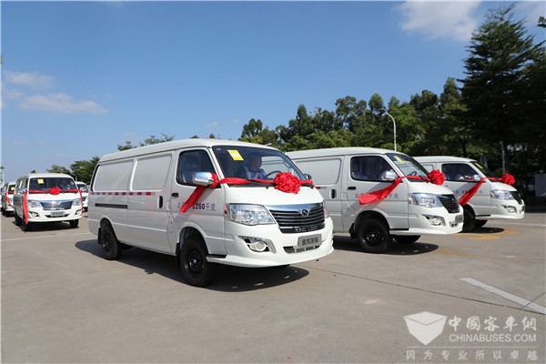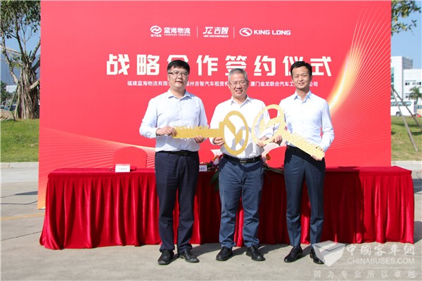 2020年11月1日,金龙客车与福建蓝海物流有限公司、福州吉智汽车租赁有限公司三方举行1200辆金龙金威纯电动物流车签约暨首批50辆发车仪式。1200辆全新升级版金龙金威将投入电动物流市场,助力打赢蓝天保卫战。