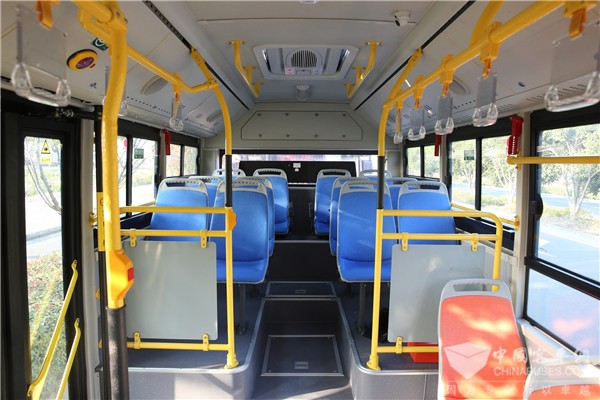 苏州金龙智能网联蔚蓝系列公交面向未来市民公共出行需求研发推出,技术先进,性能优越,造型靓丽,舒适性高。该批车辆采用与苏州大街小巷奔驰、获市民高度认可的蔚蓝公交车相同的涂装,以富有科技感的灰色为主基调,车身勾勒蓝色线条,打造城市流动的靓丽风景线。车内爱心座椅区采用明亮的橙黄色,洋溢着温暖的感觉。其他区域采用蓝色座椅,营造出安全静谧的乘车环境。