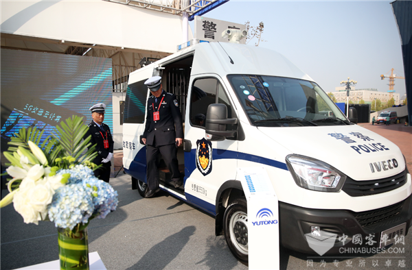 尤其是宇通交通事故勘察车,更是吸引了不少人为之驻足。该车动力强劲、机动灵活,集勘察、拖车等功能于一体,可辅助交通干警依靠车载设备快速、准确、安全地勘察处理各种事故现场、疏导交通,保障道路交通干线的畅通。并率先在行业内搭载拖车转运系统,在处理完现场事故勘察后,可以借助转运系统把事故车辆拖到路边,快速恢复交通,节省等待清障车到达前的道路恢复通行时间。