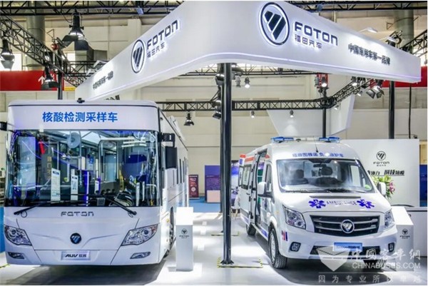 作为今年展会特别新增的防疫展览,福田汽车展出全场唯一一款核酸检测车,展车备受瞩目,车辆集便利性、安全性、人性化设计于一体,以移动灵活及安全智能等优势,成为疫情防控的重要保障。