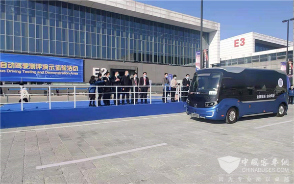 而在室外展区,金旅自动驾驶网红客车“星辰”受邀在会展现场进行实际道路运行演示,接受与会嘉宾、行业专家及观展群众的检阅,这是继9月18日 “星辰”获得首届全国自动驾驶客车营运能力挑战赛优胜奖之后,再一次吸引行业内外的目光,并获“优秀自动驾驶方案解决商”奖项。