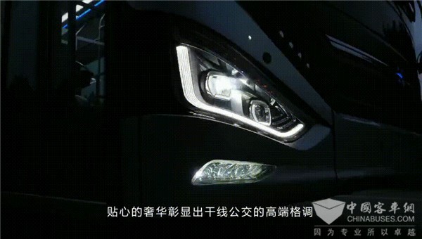 该批订单车辆的整车设计与城市的概念深度融合。外有银黑色车身交织湖蓝线条,灰色侧窗玻璃,银色轮眉,突显设计与现代感;内有全景贯通灯、电子路牌和广告屏等营造光感氛围体验。