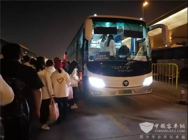 福田欧辉客车不分昼夜为大学生志愿者护航