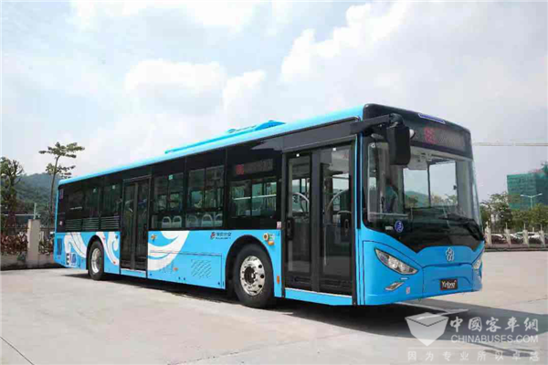 最经典的方正造型,蓝色的基调铺满了整车,车身点缀了几朵祥云,象征绿色城市里的蓝天白云;前后围组合灯充满科技感,曲面大视野前档玻璃全方位保证司机的前方视野,后围大透明区后档玻璃增加车厢内透光性,座椅设计复核人体工程学,乘客座椅间距设计远高于国标,使乘坐更舒适、通行更方便。