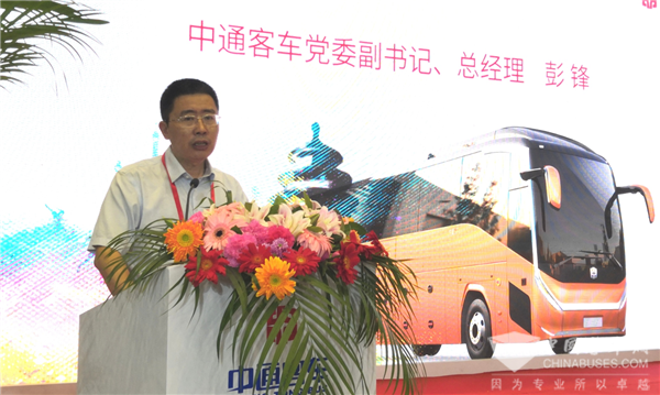 彭锋在发布会致辞中表示:“中通客车超级大巴H12作为面向高端商旅出行的产品,必将为用户带来更加舒适智能的出行价值体验,也将为广大旅游运输事业伙伴,提供面向高端化、精细化转型升级的利器。”