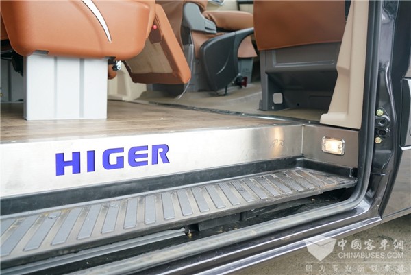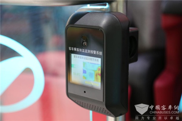 在疫情常态化的状态下,防疫配置更是必不可少。海格旅行家在车门入口部分安装了体温检测仪以及清洁液,保证整车乘客都能够处于健康的状态下乘车。