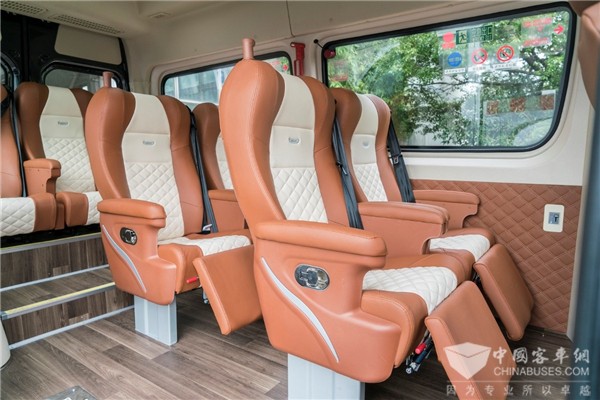 海格睿星采用了轻客的车身,上车为二级踏步设计,带有氛围灯。轻客本身就给人一种很浓厚的商务风,加上内饰配置的提升,无疑让乘车体验大大提高。而且9座睿星还根据不同的地区推出了山区版、平原版,常温版、高寒版等细分车型,满足不同地区的客户需求。