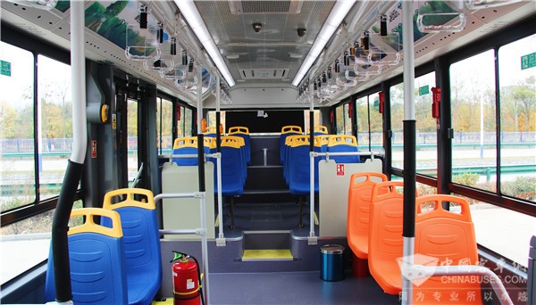 车辆沿用经典造型,大气美观,线条饱满;座椅运用黄蓝色调,搭配两侧氛围灯,为市民营造温馨舒适的乘车环境;内设隔离司机门,在冬季防疫新形势下筑起交通运营保护伞;大幅观景车窗,体验科技与人文交织的城市之美。