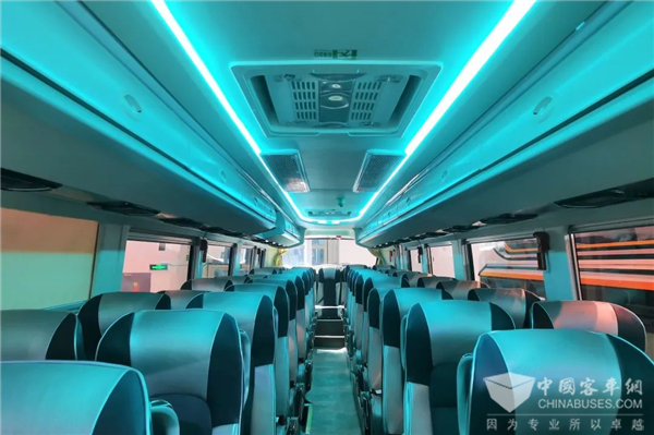 以人为本是银隆最重要的产品研发理念之一。将脸谱公路车打造为文化载体,实现文以化人的目的,是以人为本设计理念的重要体现。整车技术部内外饰研究负责人汪工表示,针对脸谱公路车作为文化载体的设计理念,在整车的内外饰设计过程中,他们做了很多人性化设计。“为打造舒适温馨的乘车氛围,我们模拟家庭吊灯在车厢顶和两侧配备了氛围灯。”汪工说。高靠背豪华大巴车座椅、USB充电口和小桌板等设计,提供航空级乘坐体验。
