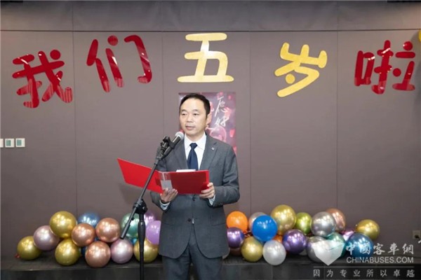中车产投党委书记、董事长胡洋发表致辞。他表示,面对百年未有之大变局,公司在危机中育先机,在疫情影响中寻找到事业成长的新道路。在中车“一核三极多点”的发展中,中车产投更加明晰方向,更加坚定步伐,必将有更多的担当,更大的作为。五年的创业之路,让我们更加清醒的认知高质量发展才是生存之道,更加坚定的相信改革才能激发活力,更加坚决的推动体制机制不断创新。