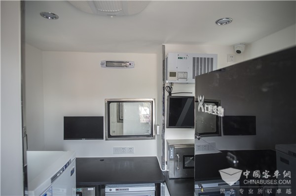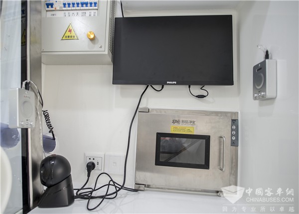 值得一提的是,在设计之初,苏州金龙相关项目人员多次前往南京医科大学附属医院实地观看了解核酸检测采样过程,深入了解核酸检测的工作场景和流程,这也为后续车辆设计研发提供了参考。