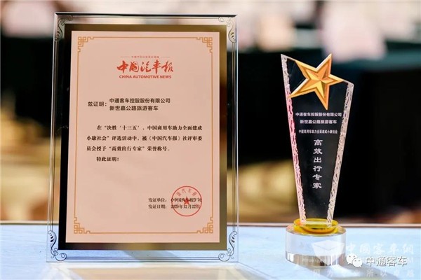 近日,由中国汽车报社主办的“车轮上的中国——商用车助力全面建成小康社会”年度盛典在北京举行。中通客车在评选中脱颖而出,荣获“大国基石”的称号,中通新世嘉荣获“高效出行专家”称号。