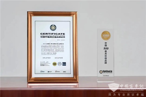 世界品牌实验室发布2020《中国500最具价值品牌》排行榜,金龙以520.36亿元品牌价值位列第115位,相较上一年增幅达14.6%