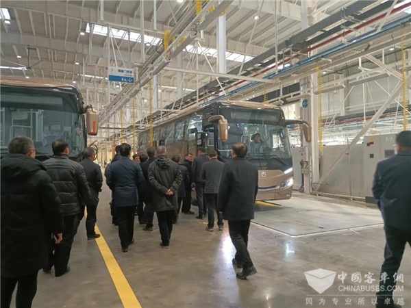 新年新气象, 在“超级工厂”总装线上,一辆辆“新巴客”华美精致,流水线作业紧张有序,一片红红火火的繁忙景象。毛伟明一行边看、边听、边询问,详细了解公司的生产运营、核心技术以及产业规划等情况。刘凌汇报说:“新能源客车超级工厂自建设以来,得到了省市各级领导的悉心关怀和鼎力支持,目前已基本实现全线拉通试投产,员工精神面貌焕然一新。