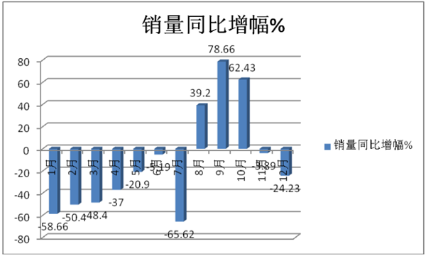 2020年12月销量同比下降24.23%,在全年9个月的降幅中居于第六