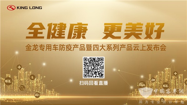 2021年1月9日,以“全健康,更美好”为主题的金龙专用车防疫产品暨四大系列产品云上展示会开启。这是金龙专用车事业部整合成立以来,首次展示其全场景定制解决方案。下面,让我们跟随镜头,走进金龙专用车事业部,领略金龙专用车事业部康养、商旅、营商、安防四大系列产品的魅力吧。