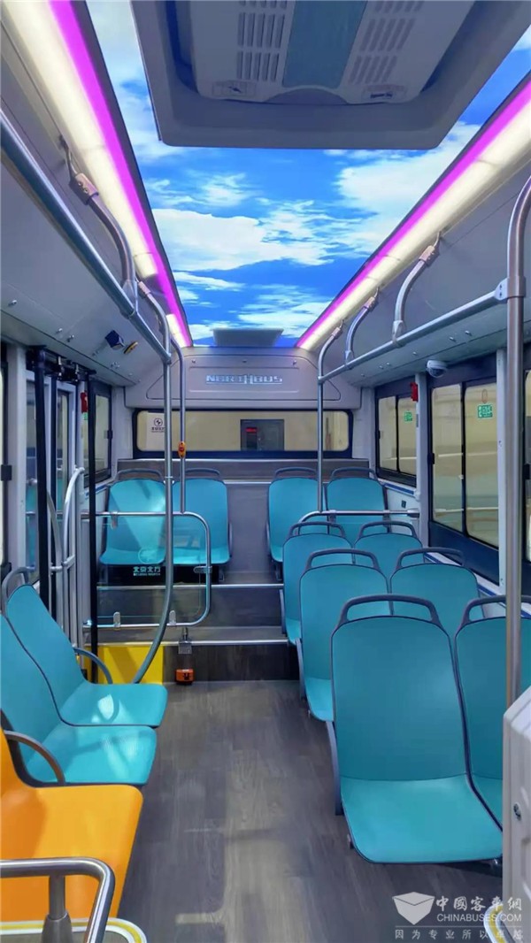 整车长6.9米、采用低地板车身结构,搭载90度电的磷酸铁锂电池,典型公交工况下续航里程不低于180KM。采用超短后悬、超长轴距设计理念,6.9米车可达到进似8米公交车的车内布局空间。同轴电机中央驱动桥,传动效率比传统纯电动公交车提高5-6%;率先采用前独立前桥,四气囊空气悬架,前后盘式制动器,路况适应性更佳,制动性能更稳定,驾驶舒适好,乘客体验感优越;车内配置全液晶仪表显示及360环视系统及多项主动安全保护系统,驾驶安全性更高。