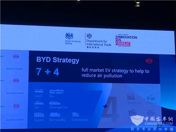 对于欧洲市场,比亚迪发布了“7+4战略”,以期实现全场景电动化,包括电动公交车、电动大巴、电动出租车、电动乘用车、电动物流车、电动市政车,以及在港口和仓储物流中心、机场所使用的电动车辆。