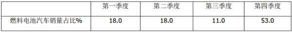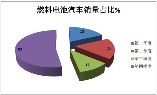 2、根据中汽协数据,2020年各季度燃料电池汽车销量占比---第四季度占比过半: