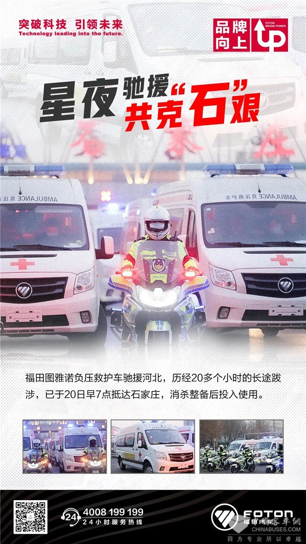 经历过与湖北疫情、新疆疫情、东北疫情的博弈,福田汽车深知医疗保障的重要意义。本次发车的10辆福田图雅诺特专负压救护车依然瞄准石家庄的物资缺口,高效、务实地为疫情一线的病人转运难题,贡献力量。