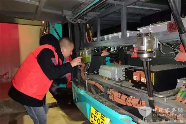 从去年12月中旬开始,苏州公交机务部门和各运营分公司也进一步加大了对车辆防寒防冻工作的保养检查工作力度,对2100多辆公交运营车辆的空调进行检修,对车辆的门窗完好情况进行检查。苏州金龙售后服务团队也与苏州公交联合制定低温及跨年运营服务保障预案,售后服务工程师们起早贪黑,确保车辆稳定正常运营。同时,夜间车辆回场后场站管理人员督促一线驾驶员做好夜间回场后存气筒放气工作和问题报修等工作;早上出场前督促驾驶员对车辆技术性能进行检查试车,确保各安全部件功能良好后方可出场投入线路运营;在寒潮来袭前,重点检查和处置气管路冰冻、车门冰冻等低温天常见问题。