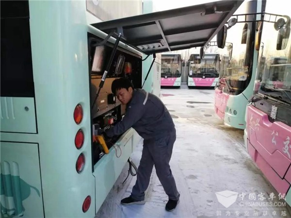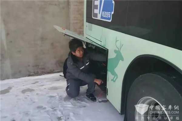 一阵阵寒风就像刀子一样刮得人脸生疼哈尔滨售后服务工程师杨翼超 在露天环境下为“新巴客”做“全身体检”确保车辆每日正常运行