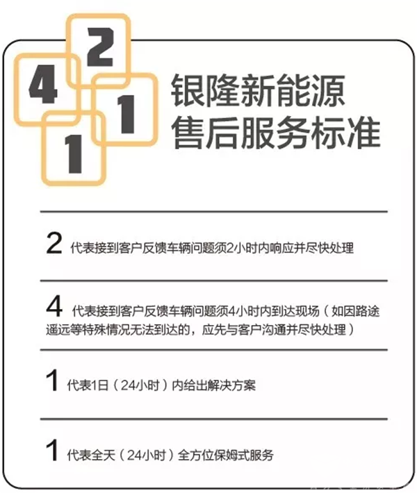银隆新能源通过改善管理实现企业转型升级,首次推出“2411”售后服务标准,以完善的售后制度、扎实的专业技能,提高企业服务质量和水平。