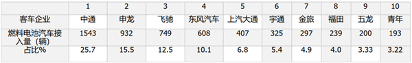 2020年氢燃料电池汽车接入量top10企业(数据来源:国家监管平台)