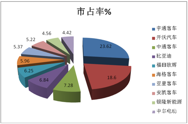 比亚迪客车销量93辆,同比大增220.69%,市占率为6.84%,位居第四;