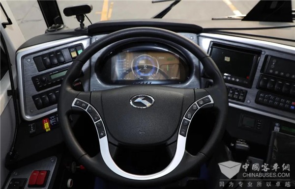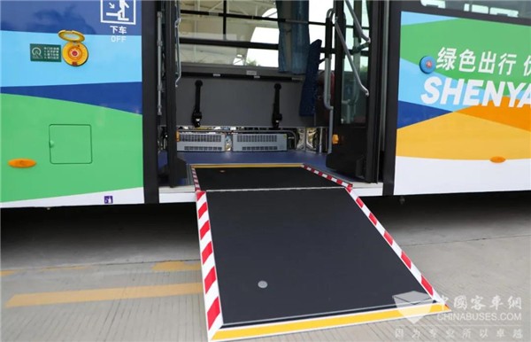 细节之处,同样精心考量。本批车辆配备电子后视镜,就算雨雪时窗外后视镜受影响,电子后视镜也可将车辆四周信息清晰呈现。驾驶舱采用12.3寸的大尺寸全新仪表盘,对于行驶状态下的关键参数,司机一眼就了如指掌。在前、中开门及车内,均配备摄像头,让司机对车内情况一览无遗。整车采用一级踏步,内部对标地铁化的空间设计,不仅宽敞,而且空间高度超过2.2米,极大提升乘坐舒适性。值得一提的是,考虑到特殊人群的出行便利,车辆安装了无障碍踏板,车内设置固定残疾人座椅,充满人文关怀。