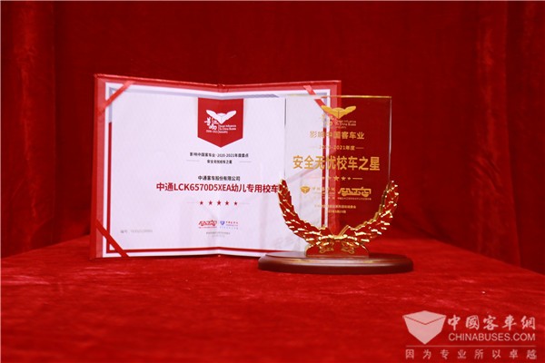 长期以来,中通客车在校车制造方面不断研发创新的同时,还勇于承担社会责任,通过多种方式唤起社会关爱儿童、增强校车安全意识,以品质实力护航儿童成长安全。本届影响中国客车业年度颁奖典礼,中通LCK6570D5XEA幼儿专用校车凭借良好的市场口碑与品牌实力荣获 “安全无忧校车之星”大奖。