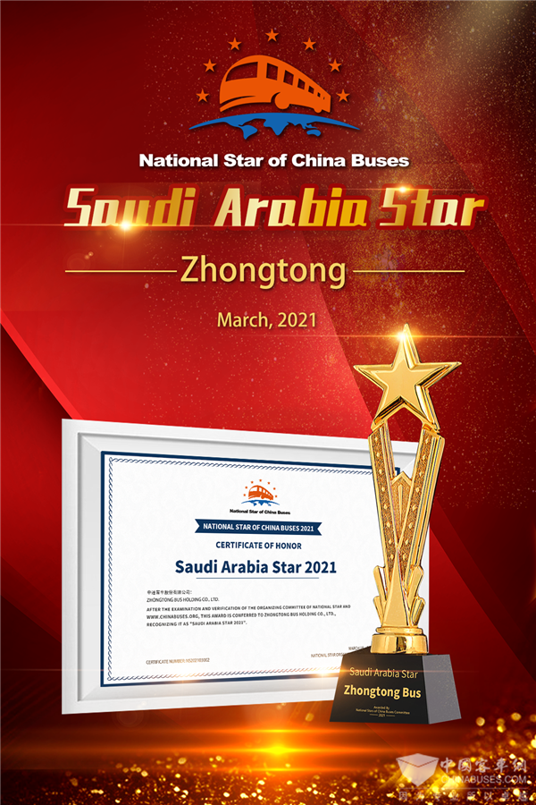 正式凭借多年来在沙特市场的辛勤耕耘,中通客车获评“中国客车海外市场沙特之星”,彰显中通实力,树立中国客车“出海”典范。