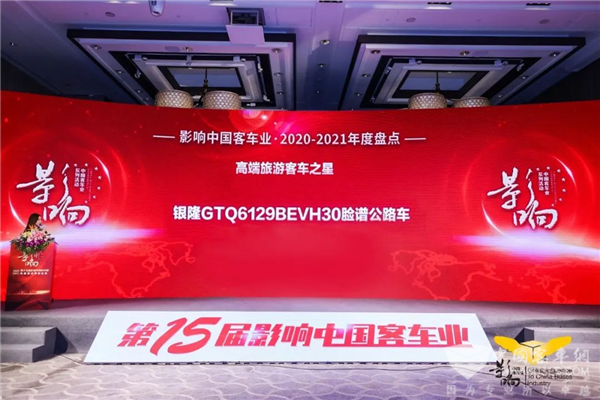 2021年3月23日,第十五届影响中国客车业“2020-2021年度盘点评选活动”在北京隆重举行。银隆新能源脸谱公路车、恒效净化健康车分别荣获“高端旅游客车之星”、“健康防疫客车之星”称号,双项行业大奖映照银隆新能源科技实力。