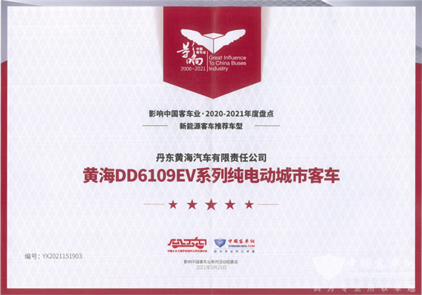 牛年使“牛”劲!黄海客车荣获影响中国客车业“新能源推荐车型”