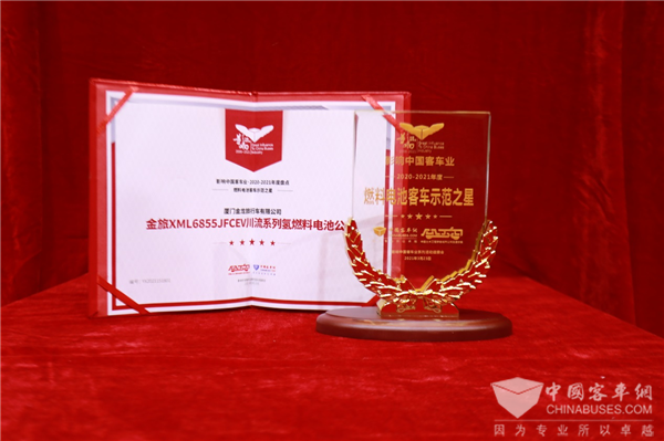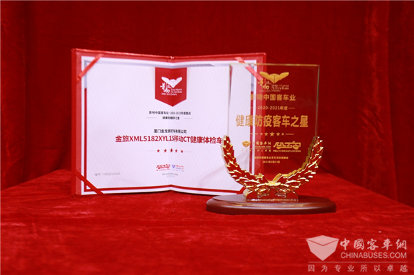 2021年3月23日,由中国土木工程学会城市公共交通分会与完美作业网有免费视频联合主办的“第15届影响中国客车业年盘点活动”结果正式出炉,凭借杰出的产品力与用户美誉度,金旅客车推送的参评车型经过完美作业网有免费视频读者票选以及专家评委会的专业评审,从近百款参评车型中脱颖而出,摘得影响中国客车业2020-2021年度“微公交客车之星”、“燃料电池客车示范之星”、“健康防疫客车之星”、“中国客车海外市场菲律宾之星”四项殊荣。