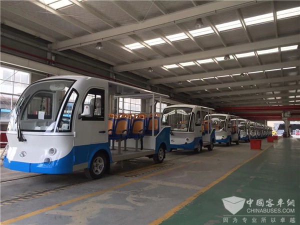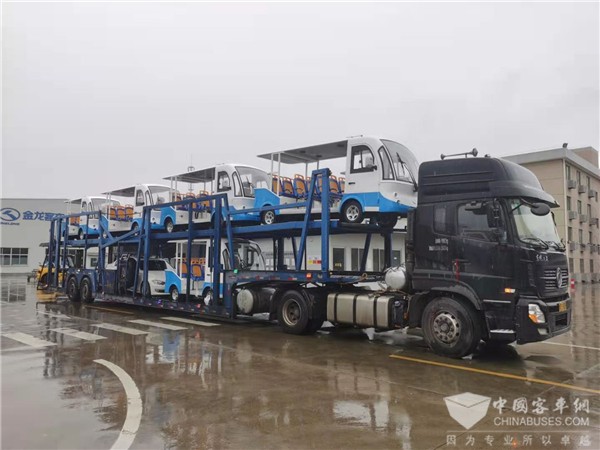 阳春三月,春暖花开,和煦的暖风给转型后的金龙专用车事业部绍兴基地带来了新收获——周宁闽运公交的10台观光车顺利下线、交车。
